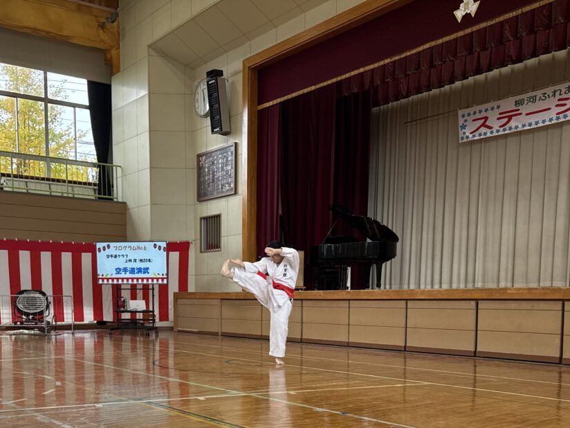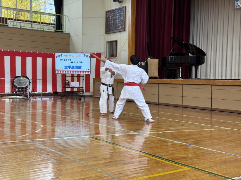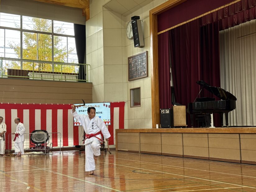 2025年11月9日(日)柳河小学校にて、柳河市民センター空手道クラブによる古武道と空手の演武を行いました。